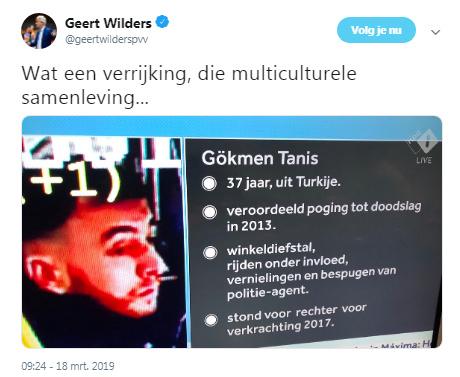 Het betreft in 99 van de 100 gevallen islamterrorisme, maar dan toch maar blijven doen of het een algemene ziekte is, die vanuit elke ideologie of religie of wat dan ook kan plaats vinden.